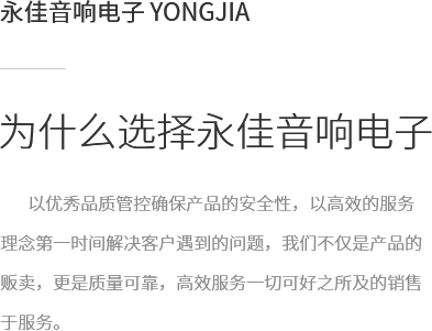 拉薩永佳音響電子有限公司 拉薩永佳音響電子有限公司坐落于美麗富饒的圣城拉薩,公司前身為拉薩昊成音響電子銷售有限公司,注冊資金為300萬元,成立于2010年3月公司地址位于西藏拉薩市貢布塘南側(cè)1號薩博廣場4-5、4-8號。拉薩永佳音響電子有限公司主營專業(yè)舞臺音響設(shè)備、會(huì)議音響系統(tǒng)設(shè)備、公共廣播音響系統(tǒng)設(shè)備、網(wǎng)絡(luò)及監(jiān)控設(shè)備、多媒體教學(xué)設(shè)備、多媒體投影機(jī)、幕布、弱電線材、辦公設(shè)備、LED液晶顯示屏品種齊全、服務(wù)效率、拉薩
